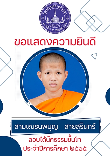 ขอแสดงความยินดีกับนักเรียนที่สอบผ่านนักธรรมชั้นโท
