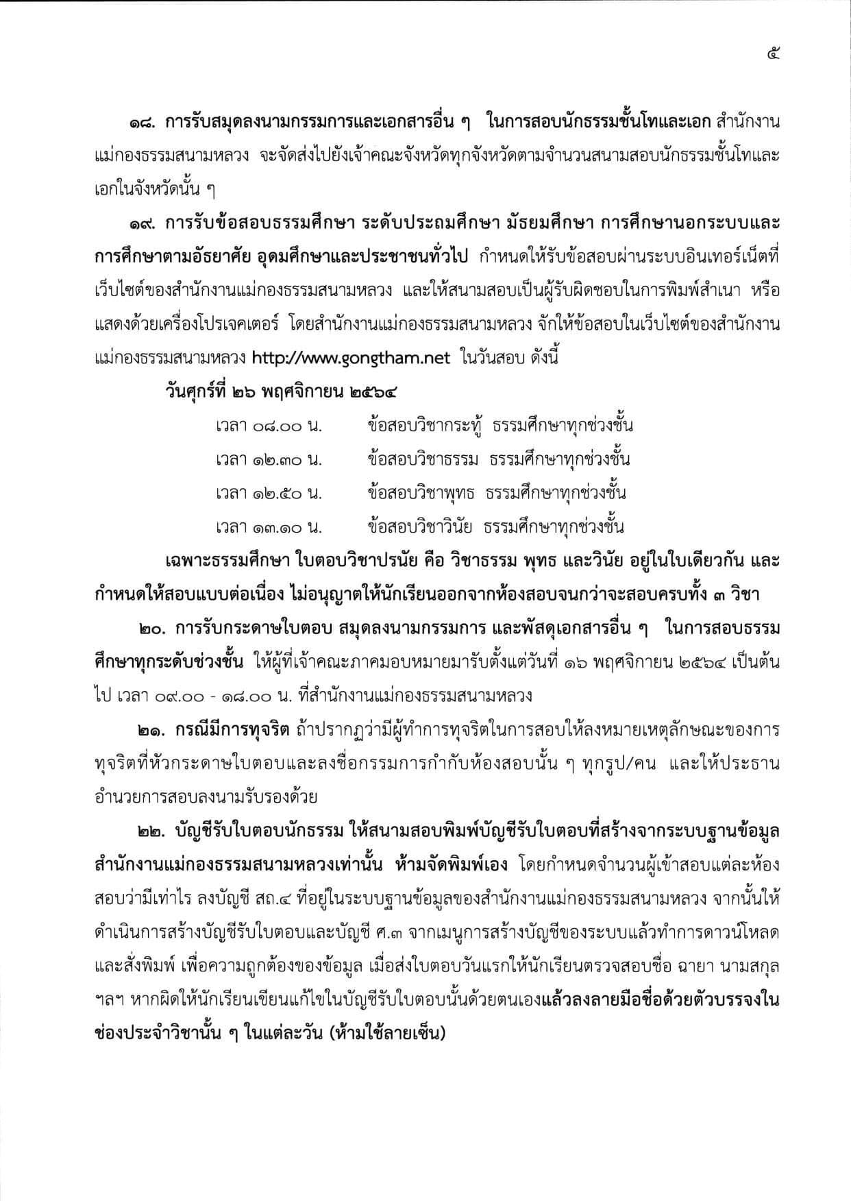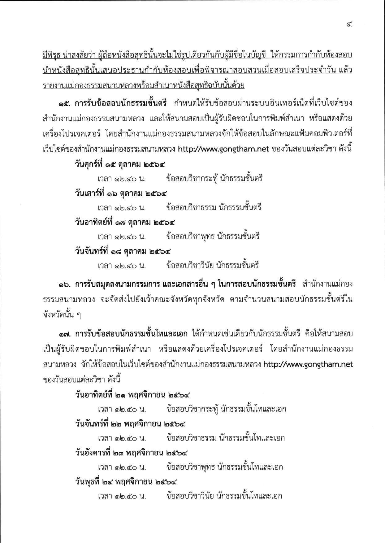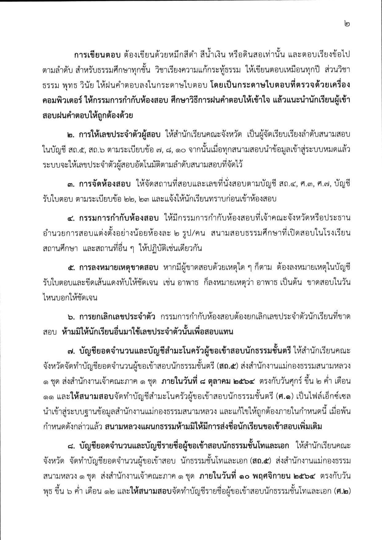 ประกาศสนามหลวงแผนกธรรม เรื่อง วิธีปฏิบัติในการสอบธรรมสนามหลวง สำนักเรียนส่วนภูมิภาค พ.ศ.๒๕๖๔
