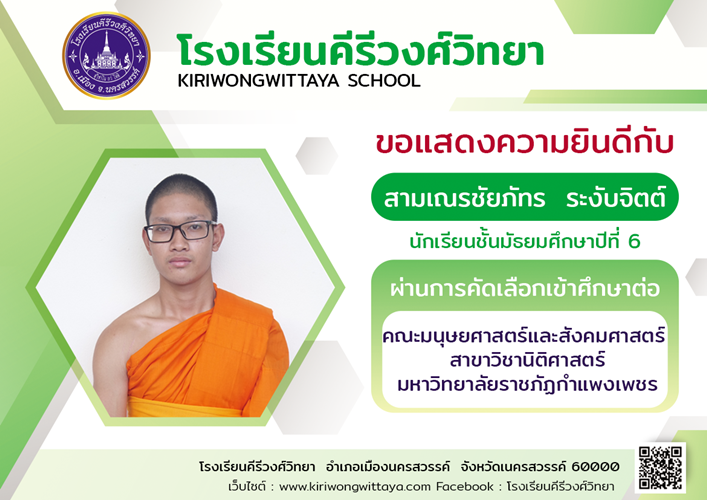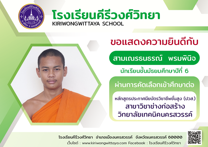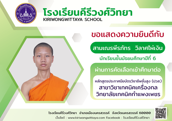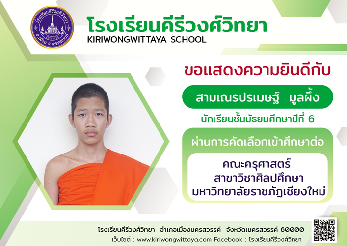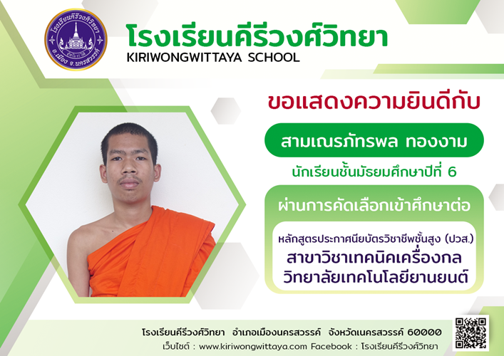 ขอแสดงความยินดีกับนักเรียนที่ผ่านการคัดเลือกเข้าศึกษาต่อในระดับ ปวส.และอุดมศึกษา