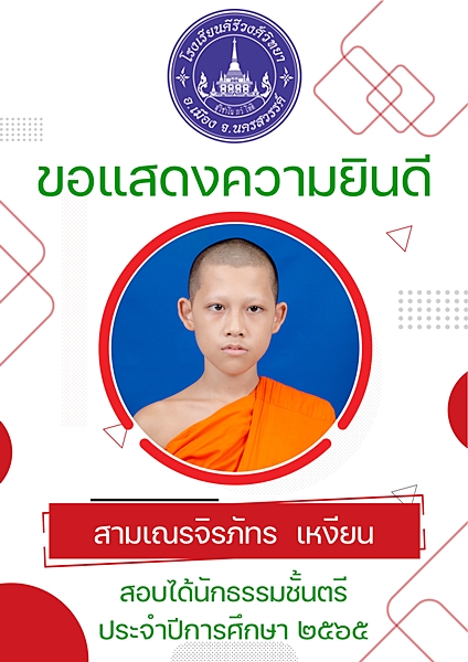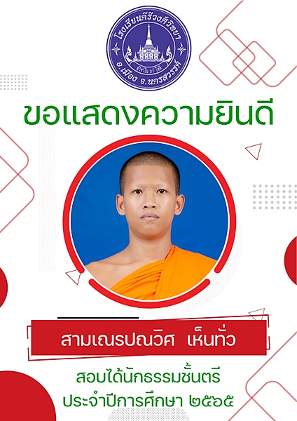 ขอแสดงความยินดีกับนักเรียนที่สอบผ่านนักธรรมชั้นตรี