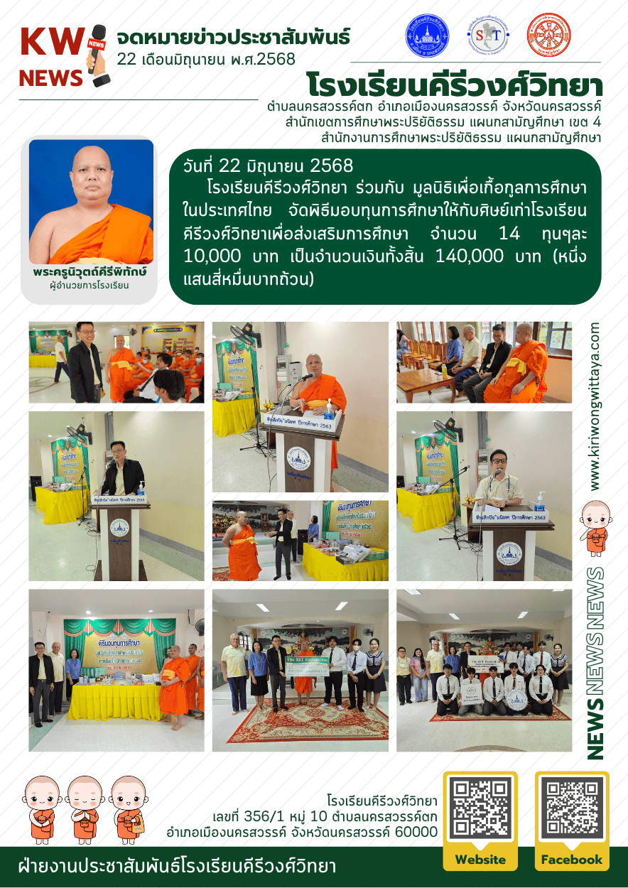 มอบทุนการศึกษา ภาคเรียนที่ 1 ปีการศึกษา 2568